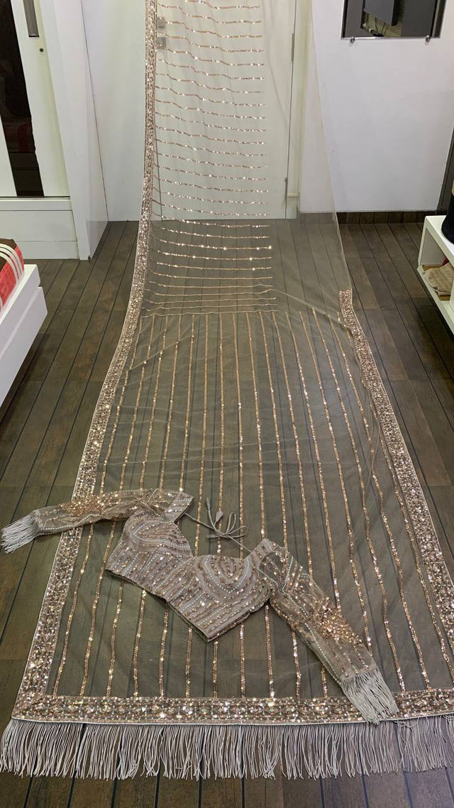 Net blouse with sequins, dori and zari work all over front and back (unstitch)