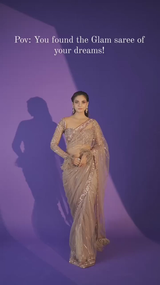 Net saree with sequins, dori and zari work, finished with jhalar border