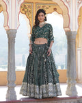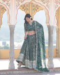 Design Green Color Sequence Embroidered Jacquard Lehenga Choli