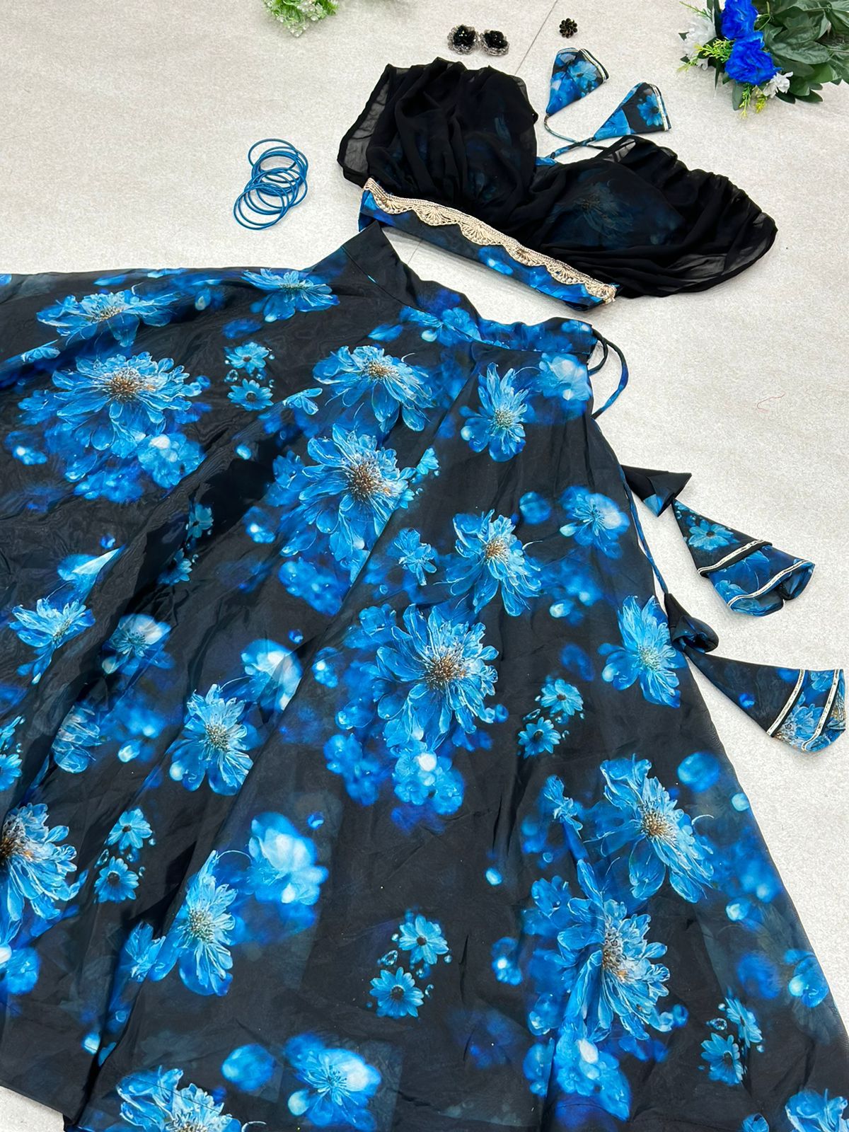 Outstanding Blue Color Organza Crop Top With Lehenga