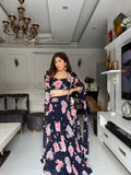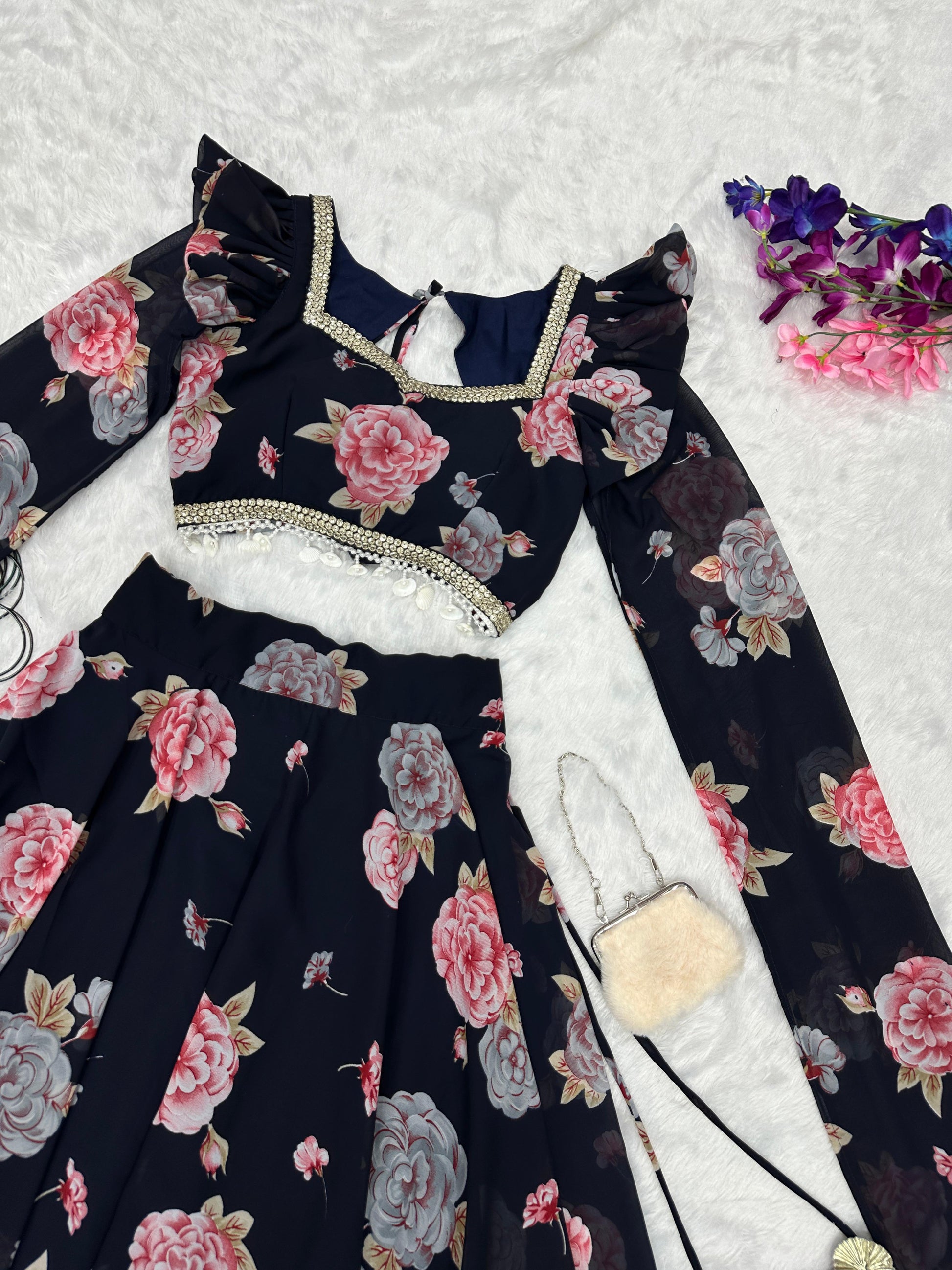 Party Wear Flower Digital Printed Black Lehenga Choli