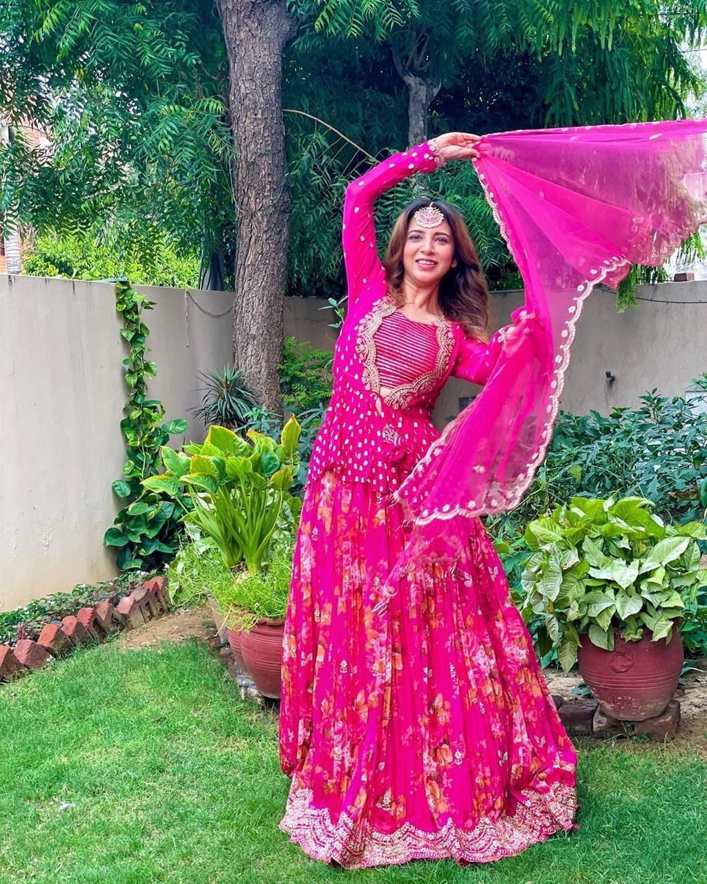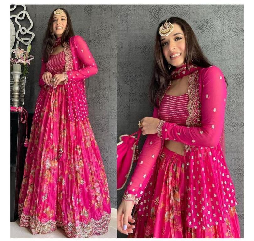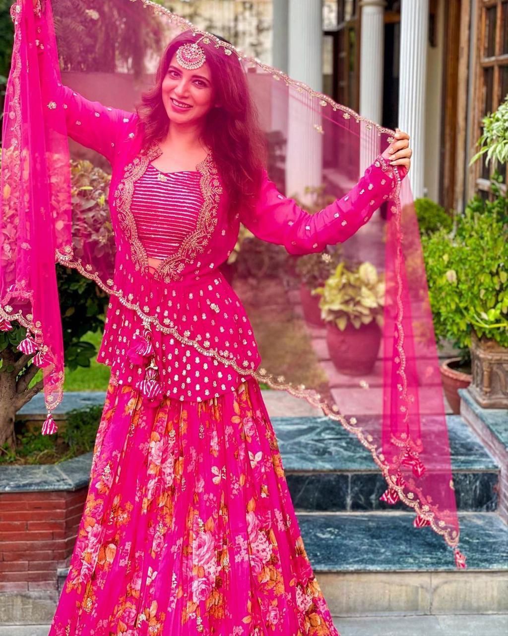 Step into elegance with our Pink Dilruba Lehenga Choli, paired beautifully with a traditional koti. Crafted from luxurious fabric, this stunning ensemble features intricate embroidery and delicate embellishments. The vibrant pink hue radiates charm, making it perfect for weddings and festive occasions. The matching koti adds a touch of sophistication, ensuring you look and feel like royalty. Embrace timeless beauty with the Pink Dilruba Lehenga Choli.