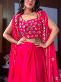 Pink Georgette Lehenga with Mirror Embroidery & Dupatta