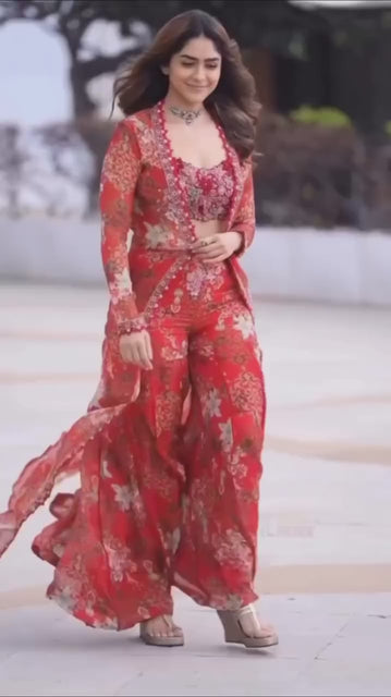 Set Includes: 1 Koti, 1 Blouse (unstitched), 1 Plazzo
