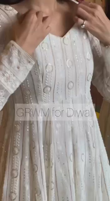 • Fabric: Faux Blooming with heavy 3mm sequins & multi-thread zari embroidered work