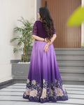 Turn heads with this Purple Faux Blooming Embroidered Work Gown, featuring intricate embroidery on luxurious faux fabric. Its elegant design and rich color make it a perfect choice for festive celebrations, weddings, and special occasions.