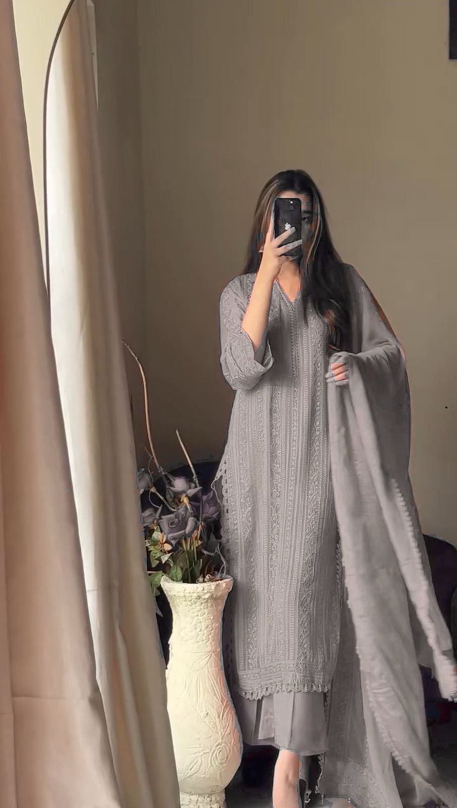 FABRIC : Chinon with Cotton Thread Embroidery and GPO Lace Work.