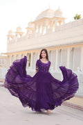 Ravishing Embroidery Zari Sequence Work Purple Gown