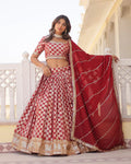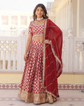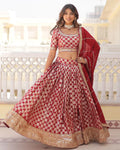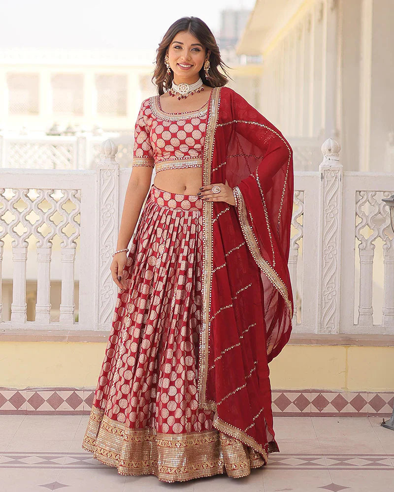 RED COLOR PURE VISCOSE JACQUARD LEHENGA CHOLI