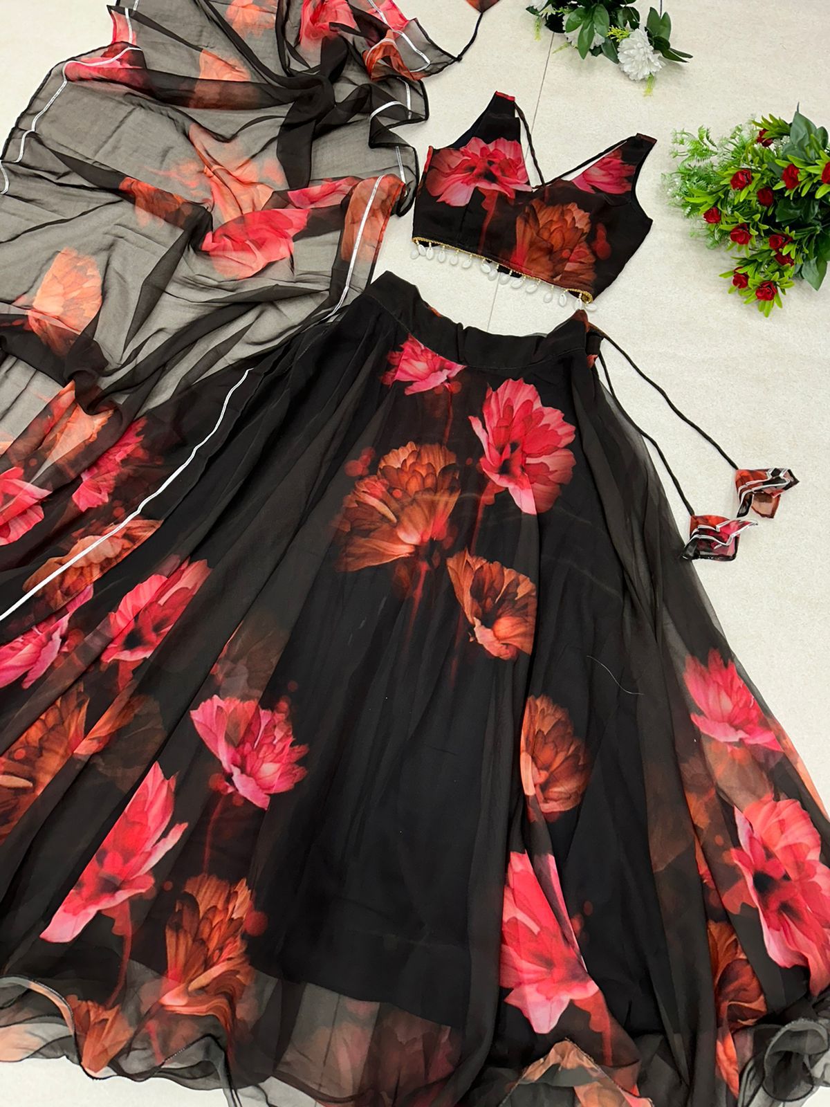 Red Digital Printed Black Color Pretty Lehenga Choli