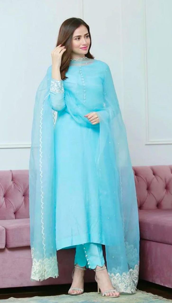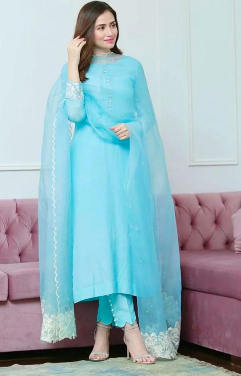 Sky Blue Designer Salwar Kameez in Pakistani Style