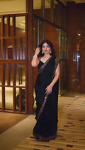 This exquisite piece effortlessly captures the essence of sophistication with its rich black hue that exudes timeless elegance. The soft drape and subtle sheen of the fabric create a luxurious feel, making it perfect for any special occasion. The minimalistic yet intricate detailing adds a touch of charm, ensuring you stand out in understated glamour. Whether it's a formal event or an evening celebration, the Sombre Black Saree is a versatile choice that embodies the beauty of simplicity.