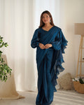 Teal Blue Color Jimmy Choo Ready To Wear Saree