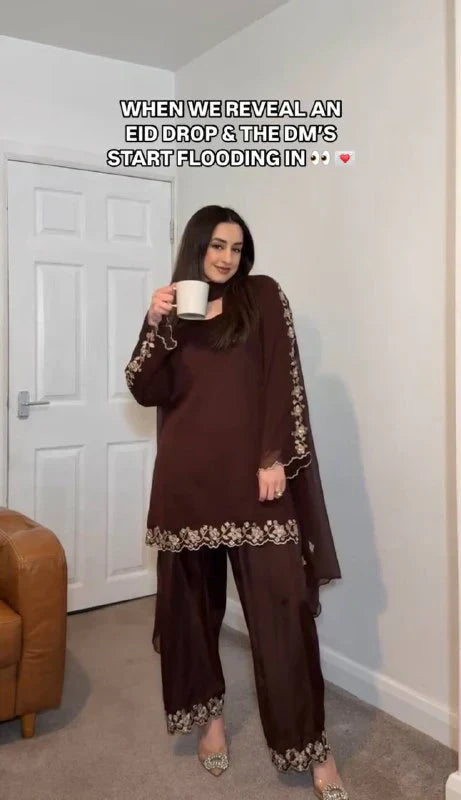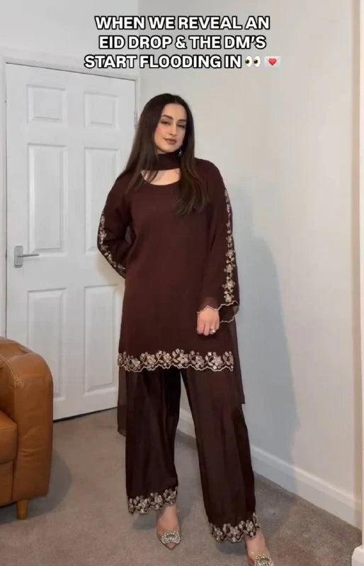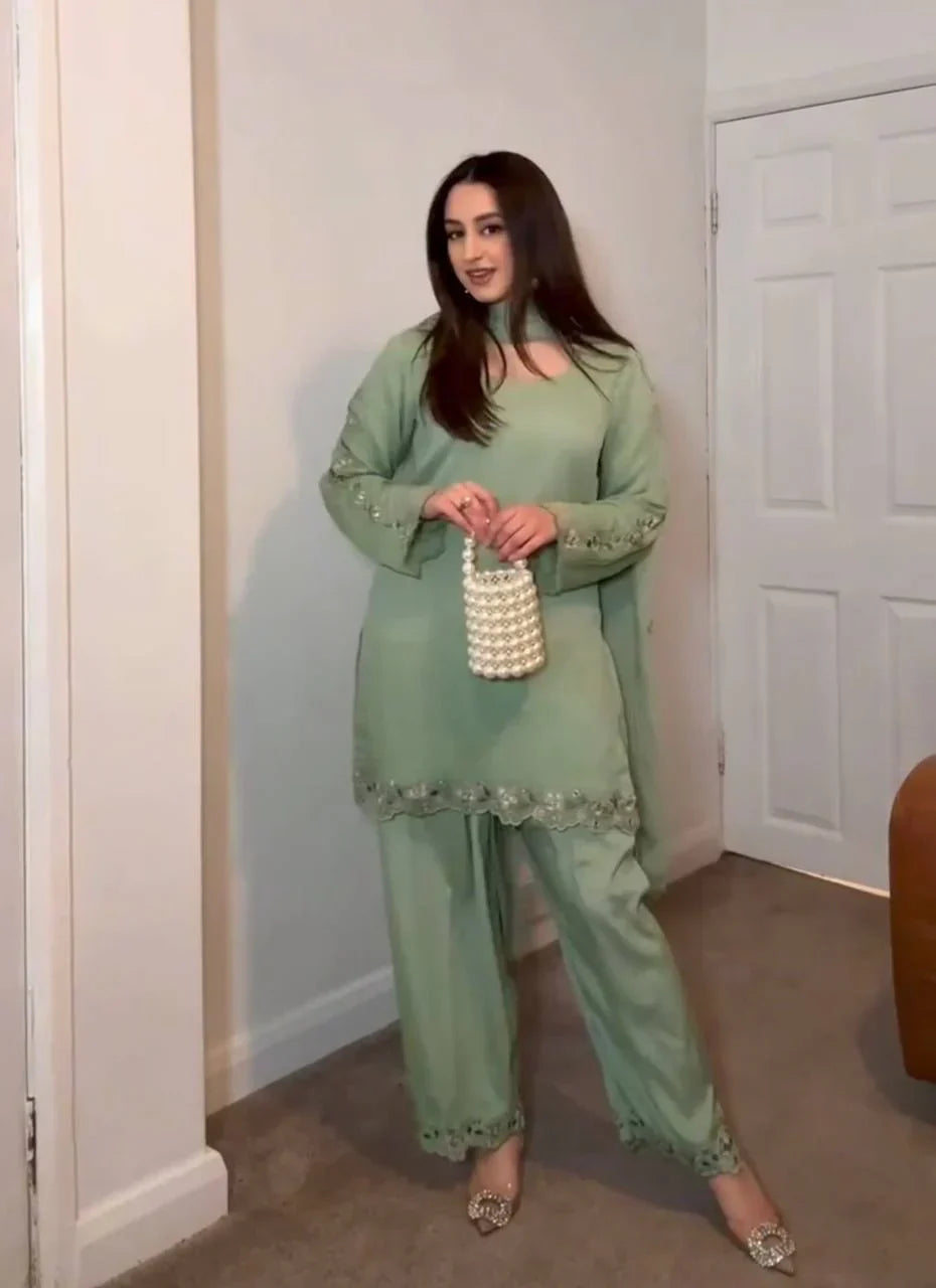 Work: Exquisite Embroidery with Mirror Detailing on Sleeves