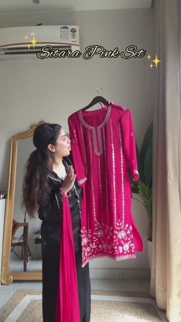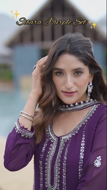 Step into timeless elegance with our Royal Purple & Pink Sharara Set, designed for women who love a blend of tradition and trend. Crafted in premium Georgette with exquisite sequin and bead embroidery, this outfit radiates pure festive charm. Perfect for weddings, parties, and grand celebrations, this set ensures you shine with grace at every occasion. 💃🌸