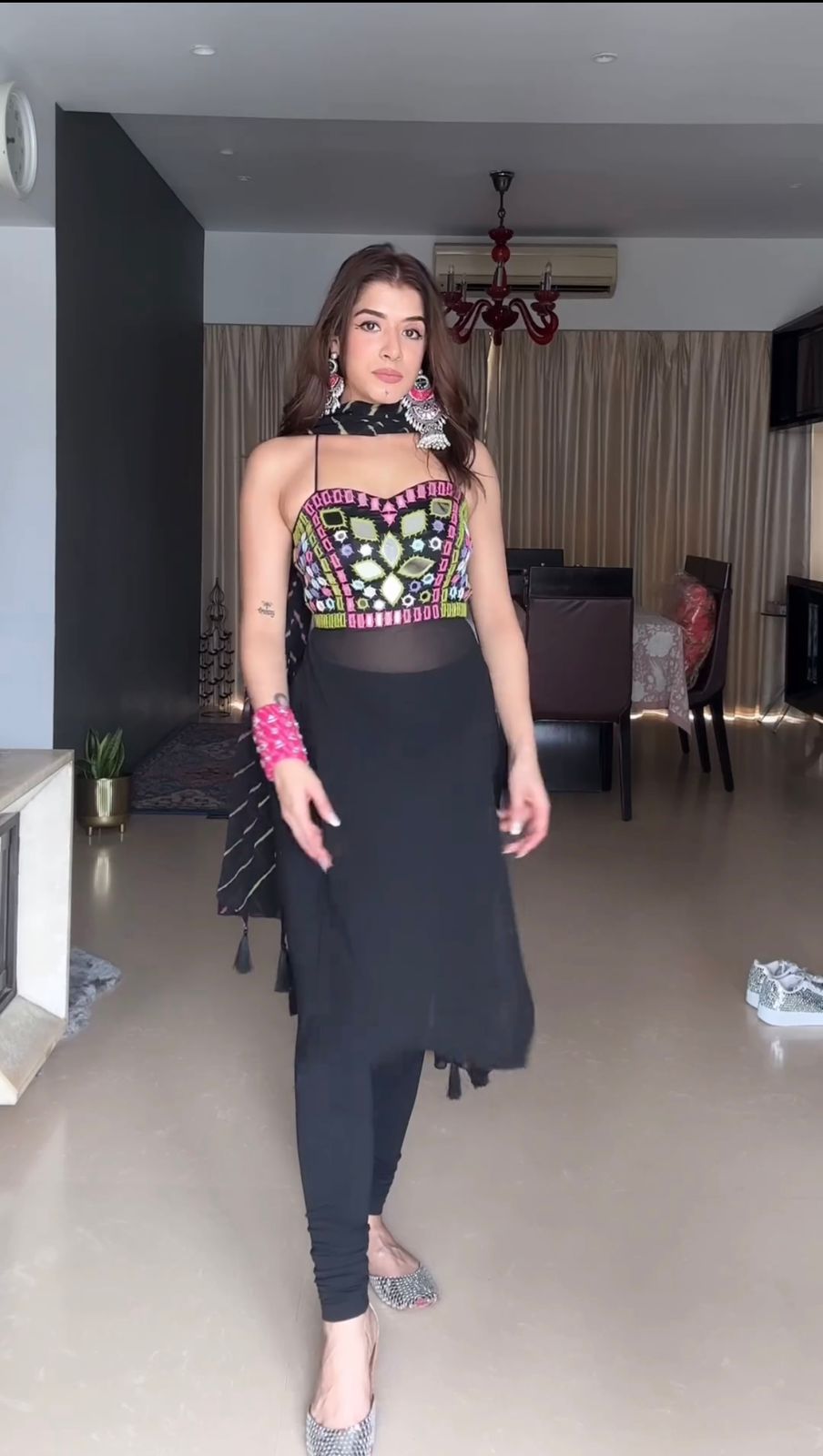 Top : Faux Georgette With Thread And Real Mirror Work