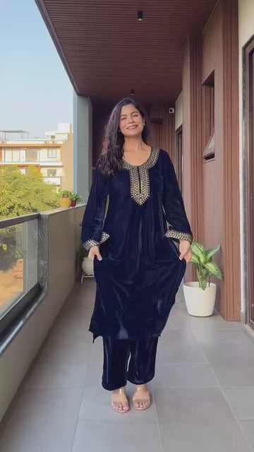 Velvet Sequence Embroidery Work 3-Piece Winter Collection Suit Set with Pant and Dupatta