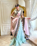 Introducing the Virangana Vogue Dual-tone Dress β a stunning fusion of tradition and modernity. This exquisite dress features a mesmerizing dual-tone design that beautifully blends rich, vibrant hues. Crafted with luxurious fabric, it boasts intricate embroidery and delicate embellishments, making it perfect for any grand occasion. Step into elegance and make a bold statement with the Virangana Vogue Dual-tone Dress, where timeless charm meets contemporary style.