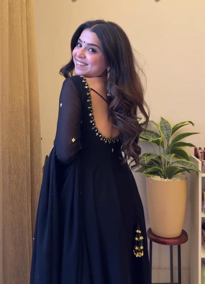 Suit : Georgette Fully Stitched and Fully Flared Anarkali With Embroidery Work and sequins