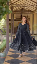BLACK WHISPERING BREEZE GEORGETTE EMBROIDERED SUIT SET TD-107