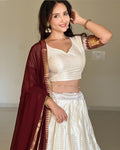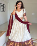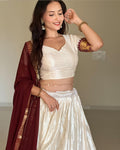 White And Maroon Color Poly Cotton Chex Navratri Lehenga Choli
