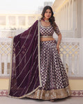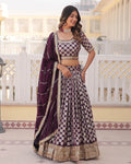 WINE COLOR PURE VISCOSE JACQUARD LEHENGA CHOLI