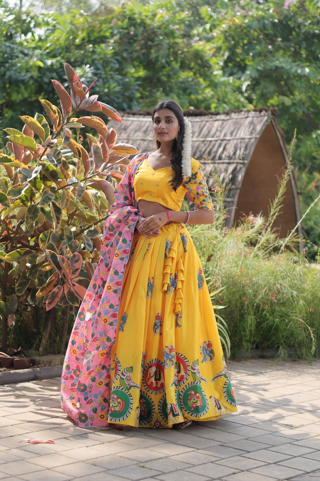 Yellow Color Dola Silk Lehenga Choli With Printed Dupatta