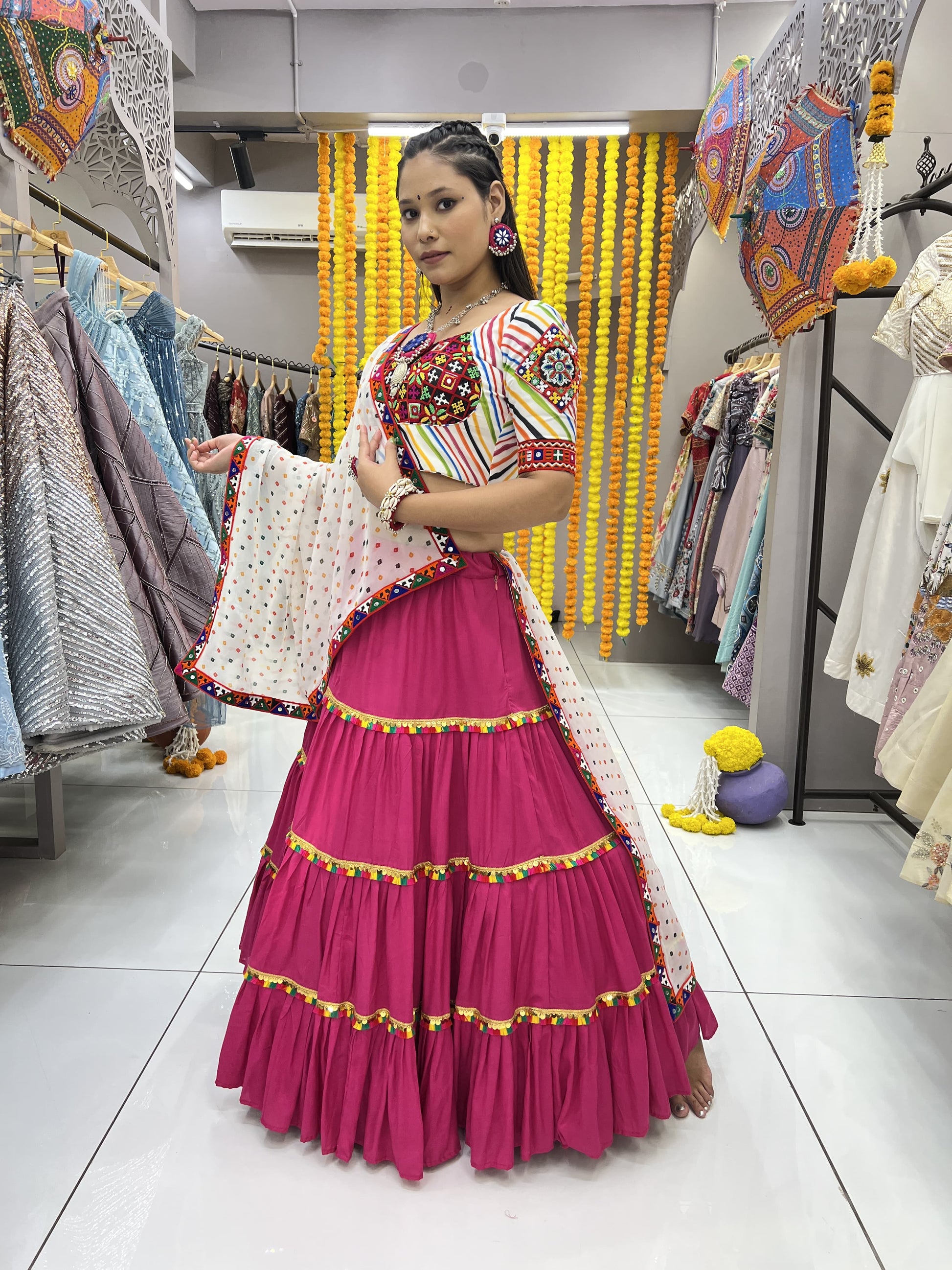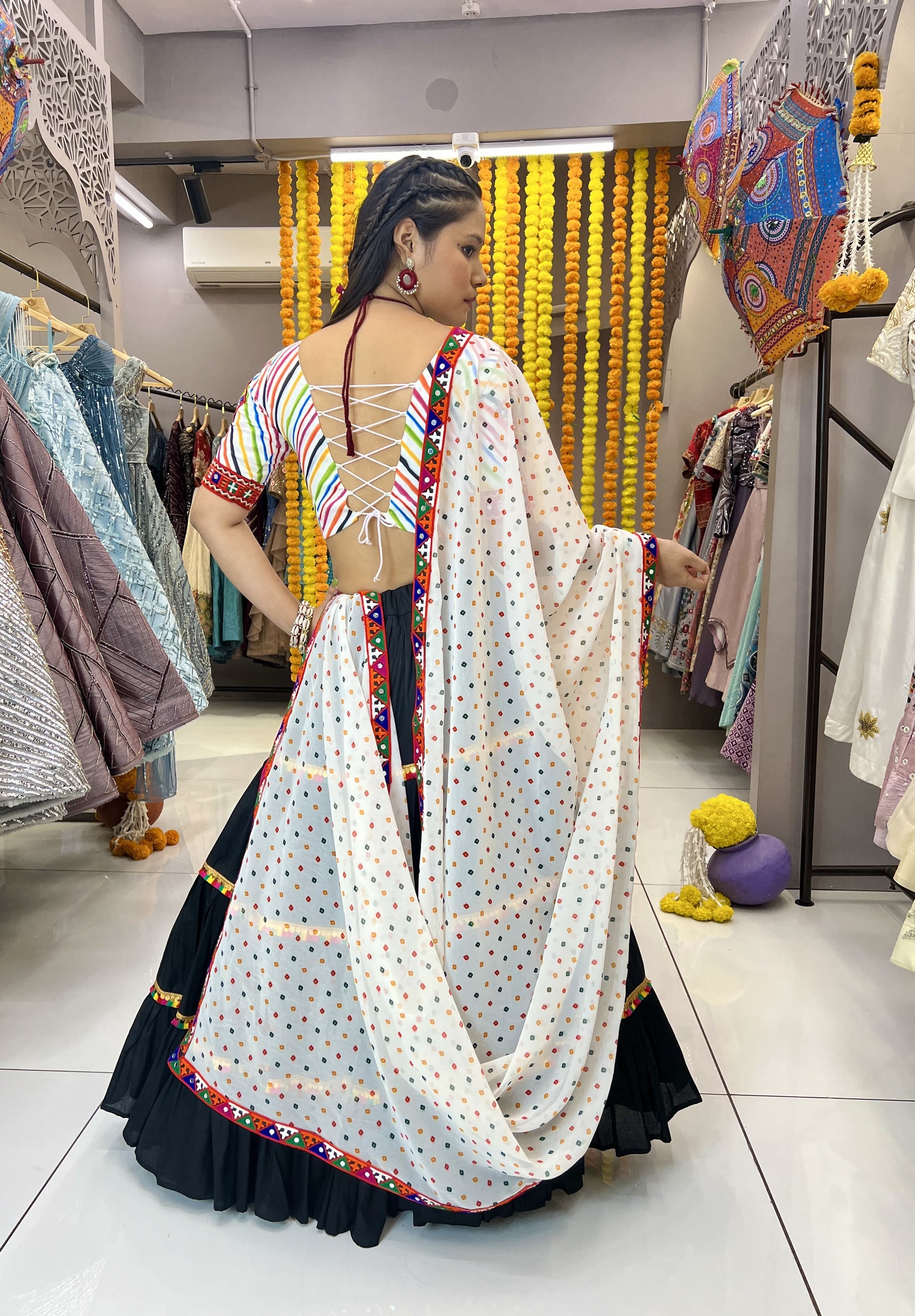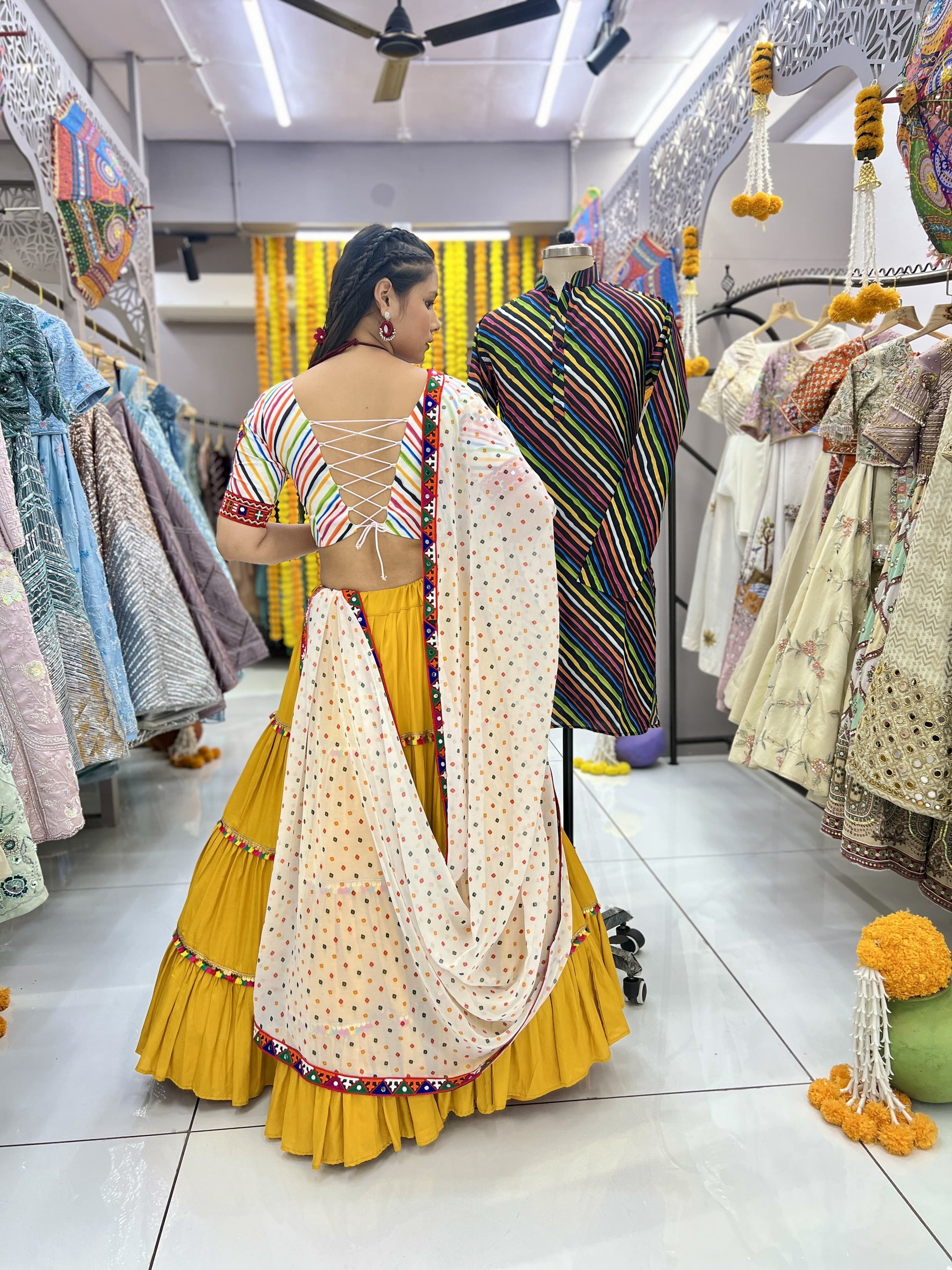 Lehenga : Heavy Georgette With Embroidery Work And Real Mirror (Fully Stitched)