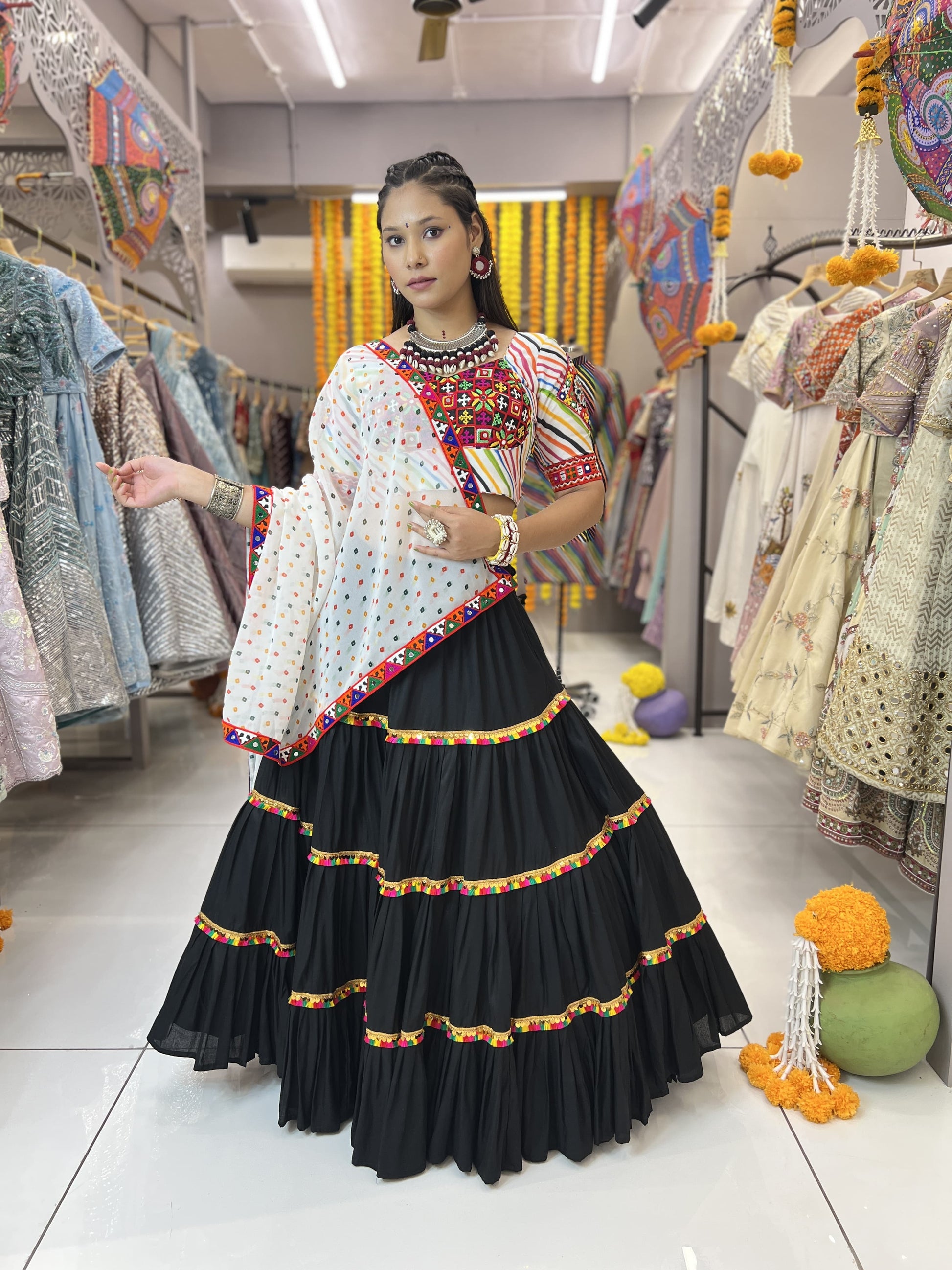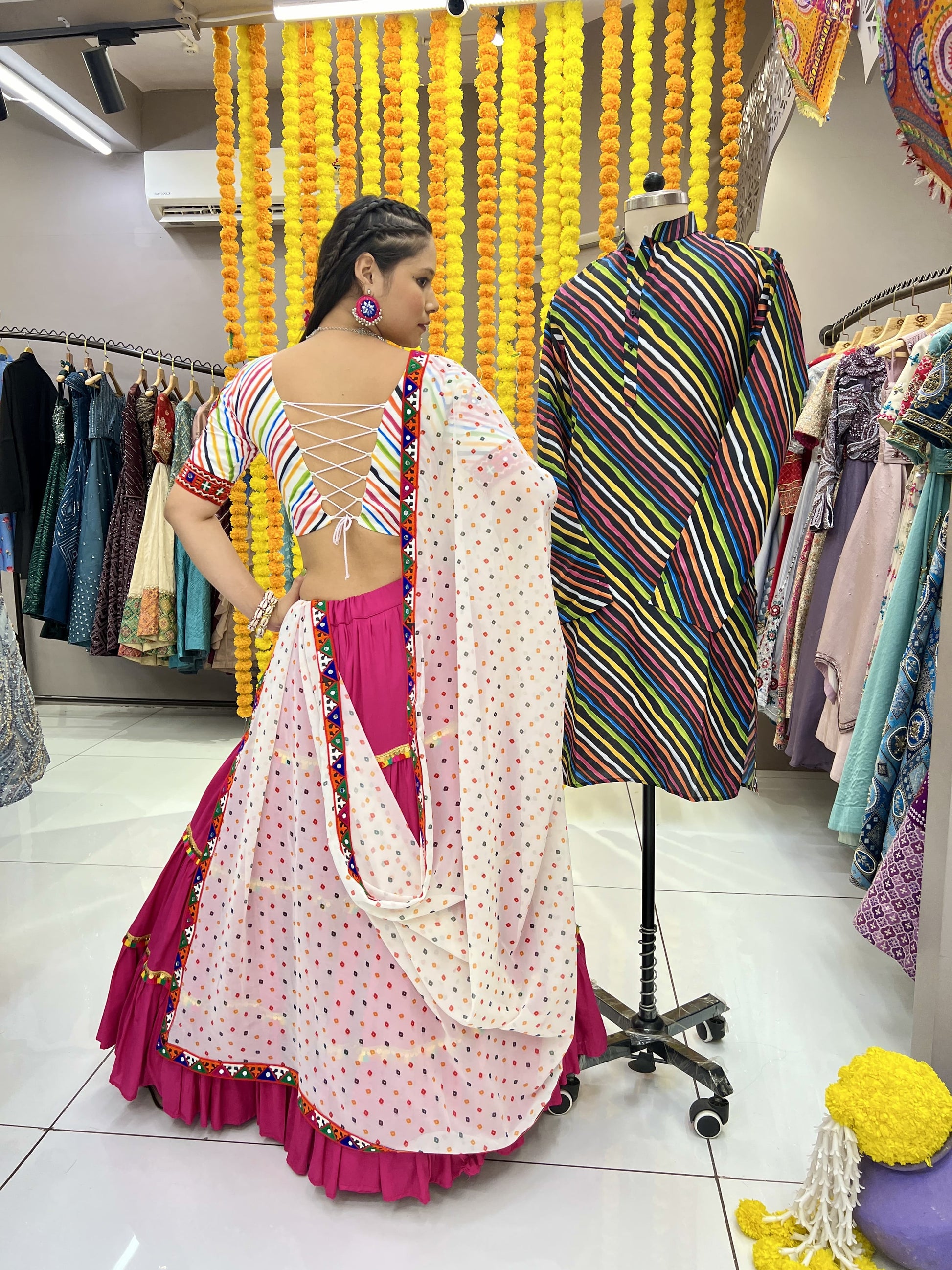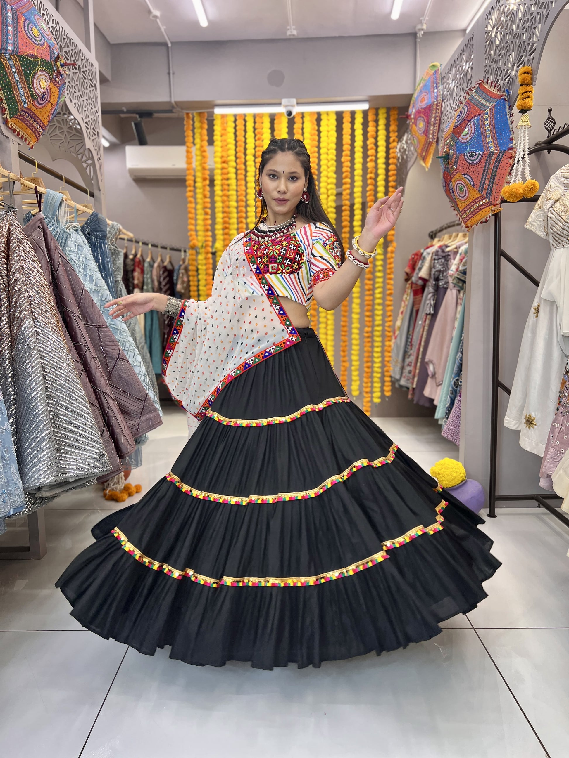 Lehenga : Heavy Georgette With Embroidery Work And Real Mirror (Fully Stitched)
