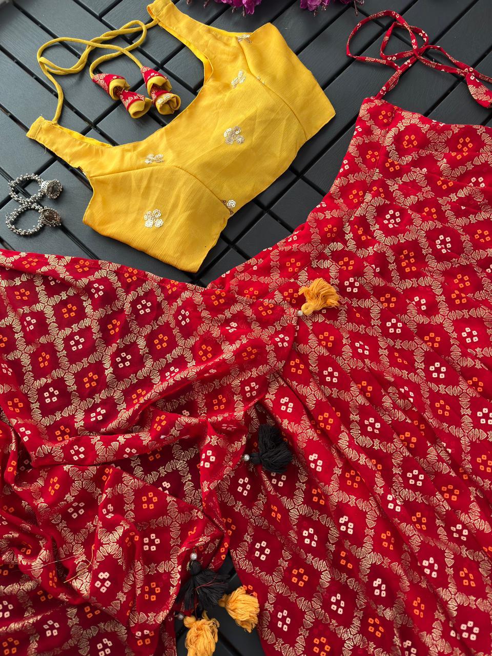 Lehenga : Heavy Soft Weight Less Georgette With All Over Patola Print Work (Fully Stitched)